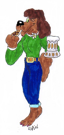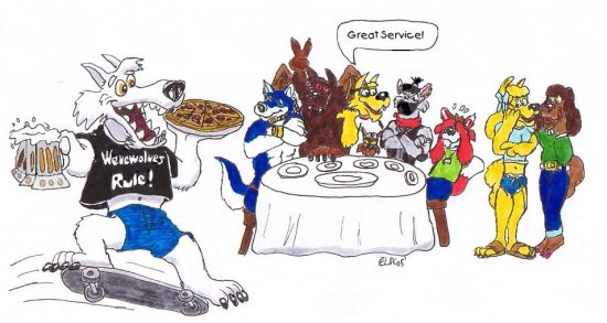 The Busboy finally makes an appearance here at the Werewolf Cafe...serving up pizza to everybody, including JamieD.