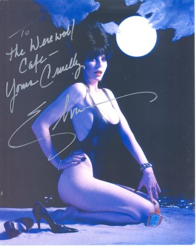 A "thank you" goes out to Cassandra Peterson, also known as "Elvira," for this great autographed picture she did for The Werewolf Cafe! Thank you so much Cassandra...er I mean Elvira, you rock! You can check out the Elvira website at www.elvira.com.