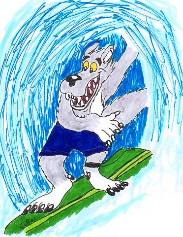 Hey, dude! Surf's up and who cares about that wet wolf scent of mine!