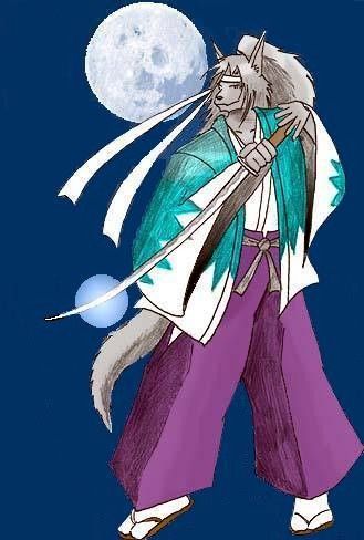 it's a drawing of ninja in a kimono w/ his kitana glinting in the moonlight