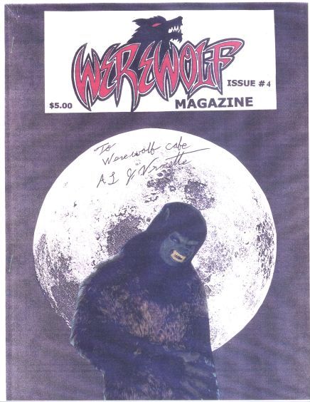 A very big "thank you" goes out to Publisher/Writer AL J. Vermette who has been a very good friend to The Werewolf Cafe. AL autographed the latest copies of two of the magazines he works on titled "Blood Moon Rising" horror magazine (issue #28, Winter/Spring 2006) and "Werewolf Magazine" (issue #4). AL also autographed a copy of his chap book titled "They Hunt By Night." Thank you AL! To find out about these publications and more, please check out the brand new website at www.BloodMoonRisingMagazine.com for all kinds of information.