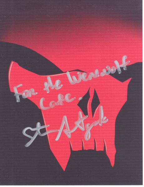 A big thank you goes out to writer Stephen L. Antczak who autographed this copy of his comic book "Nightwolf" (Issue #1 The Price) and this "Nightwolf" promotional card for The Werewolf Cafe.