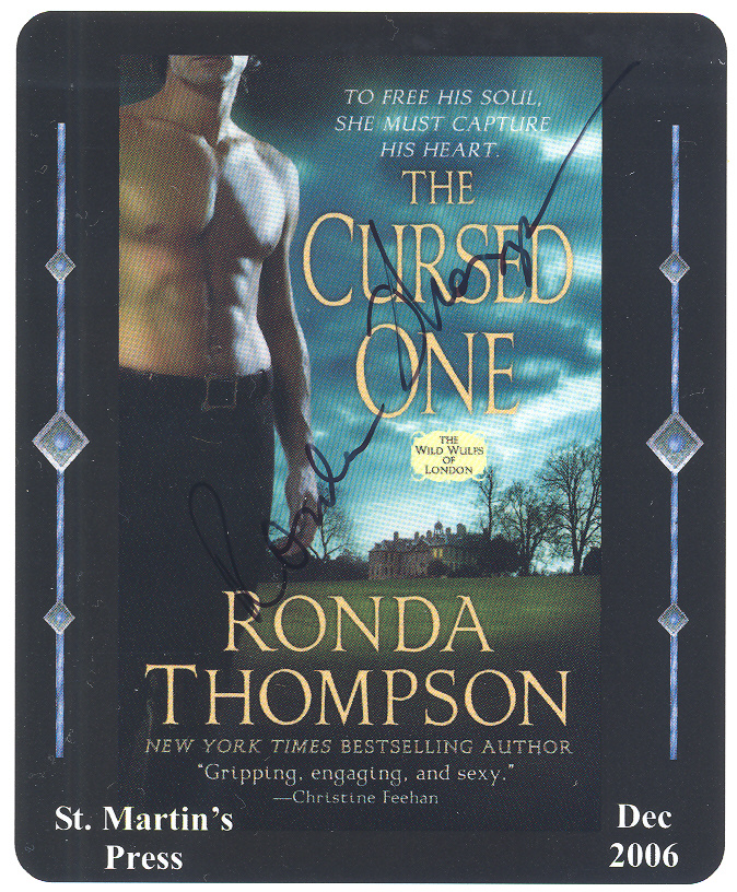 Another big thank you goes out to author Ronda Thompson for this autographed, limited edition, collector card for her newest book titled "The Cursed One" (which is the third full length book in her Wild Wulfs of London series).